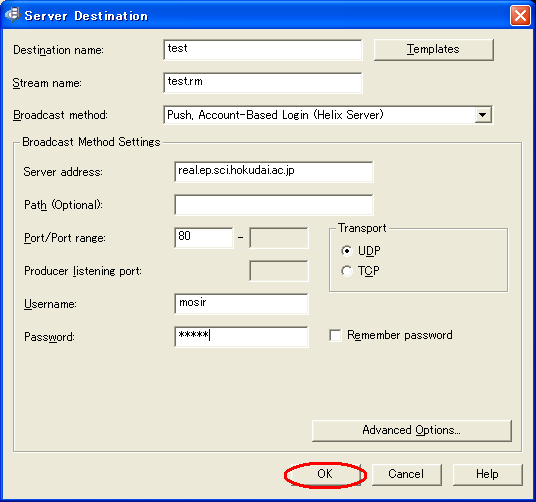 RealPlayer などによる映像へのアクセスは, 以下の URL を入力し行う.